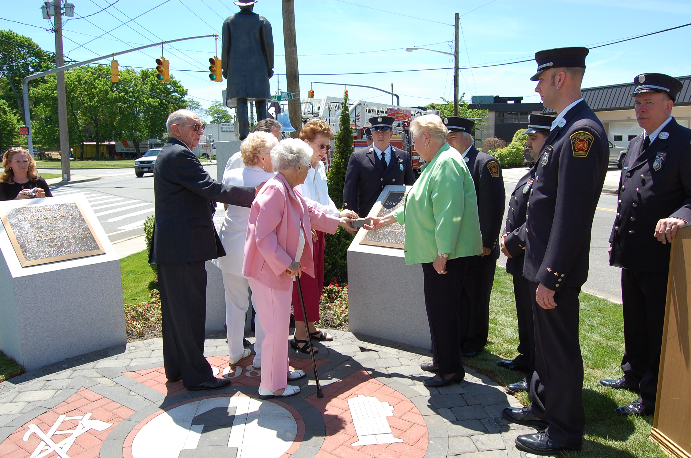 WE gave Honor for the 3 Line of Duty death and the 9-11 Deaths at the 100th Anniversary. The 4 - 24"x24" Bronze Plaques on top of Vermont Grey Granite this was quite a statement of HONOR!!