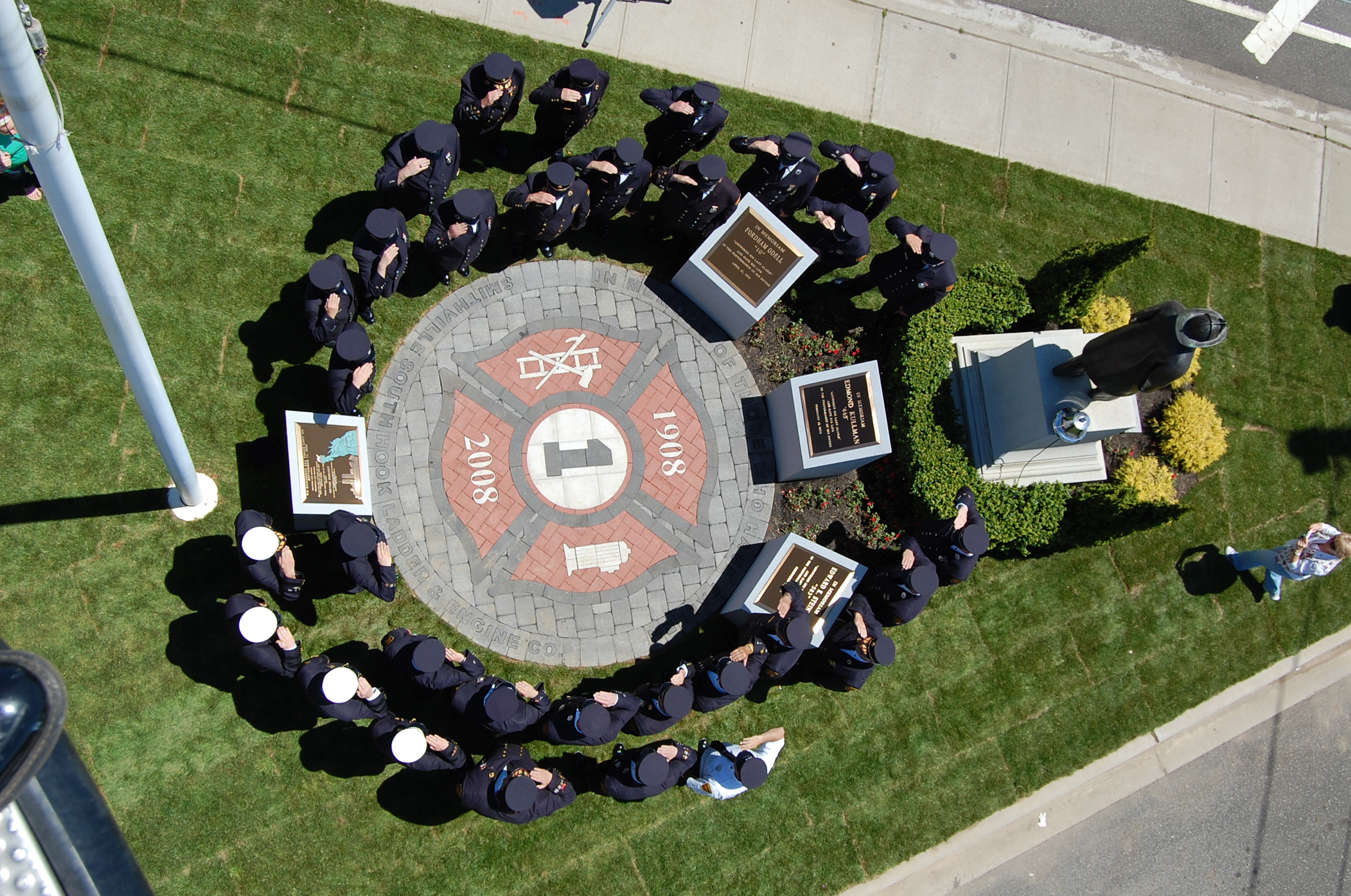 We left the last piece of the puzzle out so the families could complete the Memorial. The 3 families from the 3 line of duty death took a corner of the triangular paver and completed the 12' round Maltese Cross Pavers Memorial . It was a real 100th anniversary celebration.