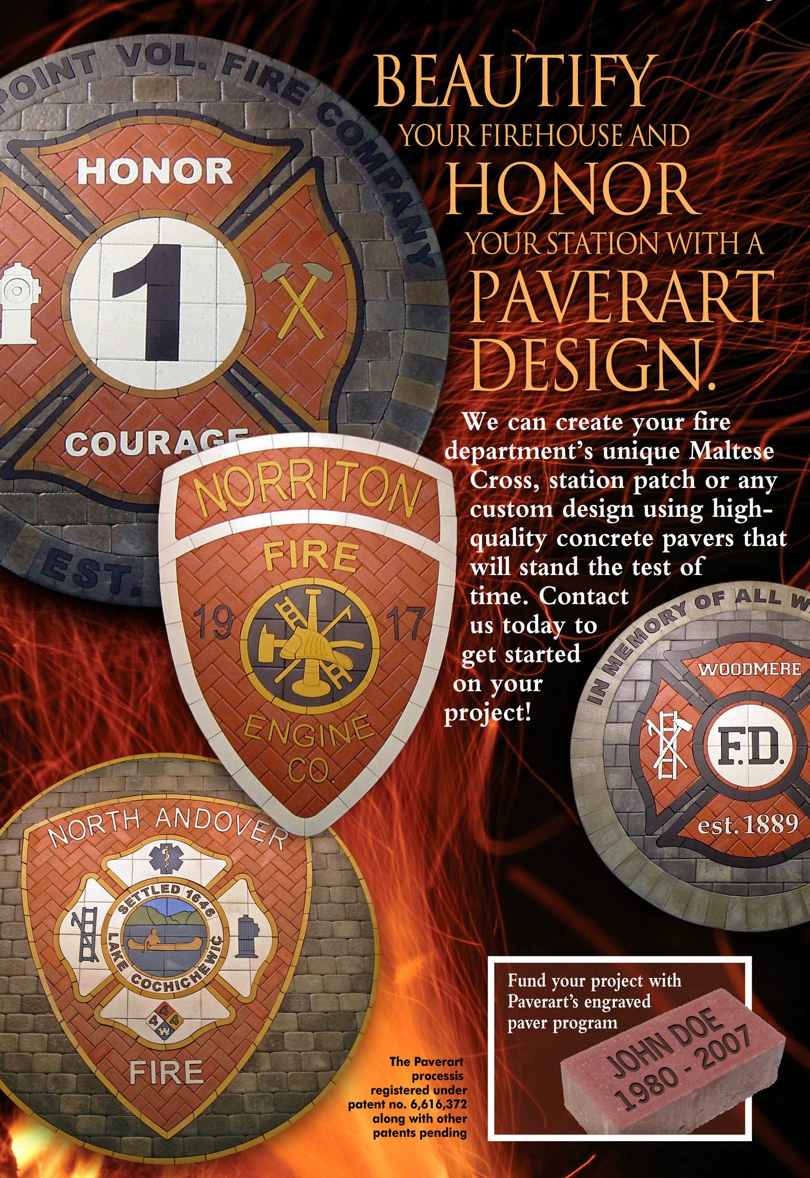 Customized Maltese Cross Pavers can be made to order in any size. We can simulate your station patch with such detail!!